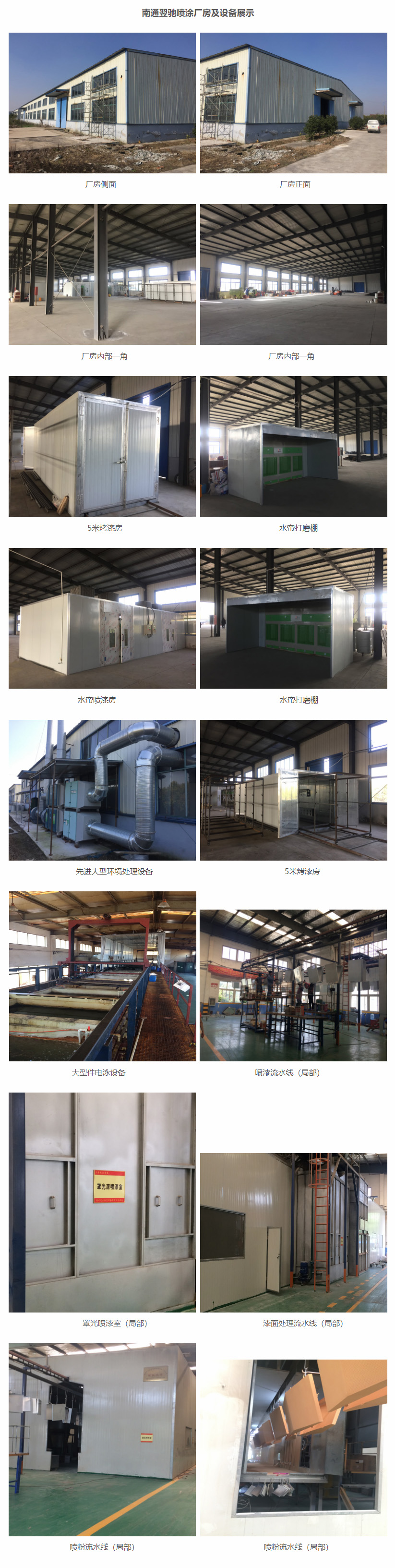 南通91视频网站免费工業配件(jiàn)有限公(gōng)司占地麵積5000餘平方米,建築麵積3000餘平方米,擁有現代化環保型塗裝生產線三條,均采用國(guó)內先進的(de)設計(jì)和建造理念,集科學、自(zì)動、高效、節能、環保(bǎo)為一體,在進一步提高核心競爭力的同時,降低了汙染排放,強化了社(shè)會責任感。公司目前擁有大型自動化靜電粉末噴塗流水線一條,大型環保(bǎo)型噴漆流水線兩條。同時配套有無塵打磨房、水幕噴漆房、無塵噴漆房、高低(dī)溫烤漆房(fáng)、環保(bǎo)型噴砂房、脫脂磷化槽、汙水處理設備等現代化設備(bèi)。可加工長度20米,單件重量可達十噸以上(shàng),日噴塗量1000㎡以上。